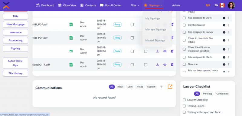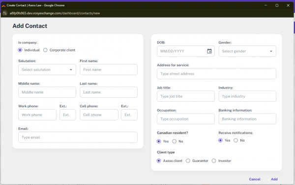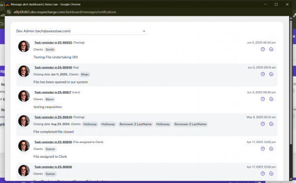 ROSY is a secure, web-based application specifically developed to support and enhance the conveyancing processes used by Axess Law. The platform allows legal professionals to manage real estate transactions efficiently, from initial client intake to final closing. ROSY supports multiple user roles with varying access levels, ensuring that sensitive information remains protected while allowing seamless collaboration. The system is designed to operate across modern browsers and devices, requiring only a stable internet connection for access. All data entered into ROSY is stored securely, with regular backups and compliance with industry-standard data protection protocols. This manual provides a comprehensive overview of the application’s capabilities and how to use them effectively.