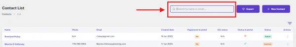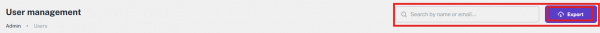 At the top of the User Management screen, the first feature you'll see is a search bar. This allows you to search for users by their name or email address, making it easy to quickly locate a specific user from the list.