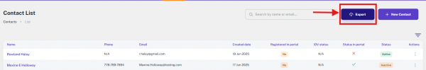 Next to the search bar is an “Export” button. When you click this button, the entire list of users is instantly downloaded to your device in CSV format. This feature is especially useful for reporting, record-keeping, or sharing user data in a structured and portable format.