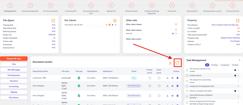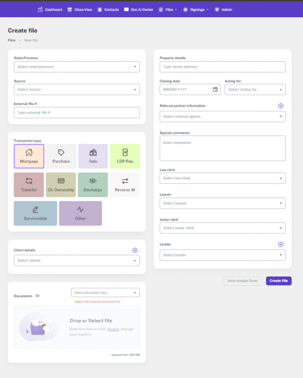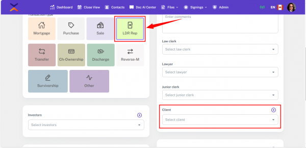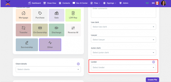 This guide explains how the Lender selection works in the File Section for different transaction types, especially for LDR Rep files. In most cases, the Lender is displayed as “Lender,” but in LDR Rep transactions, it appears as “Client” while still being saved as a Lender in the backend.