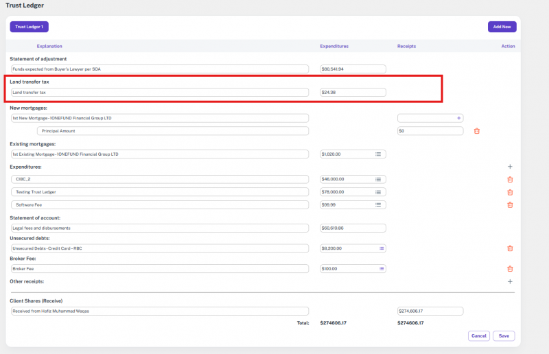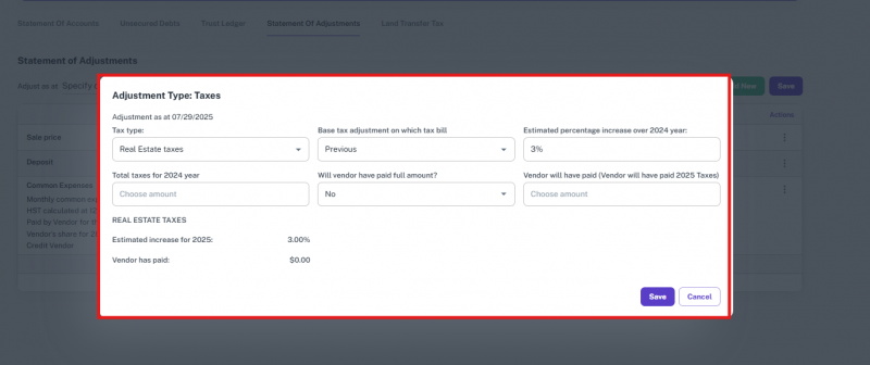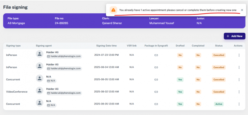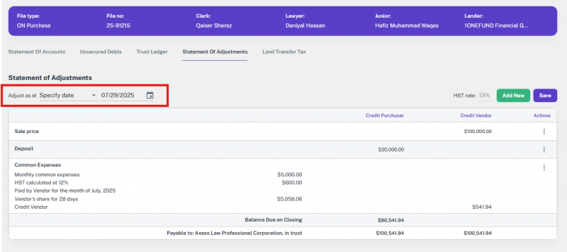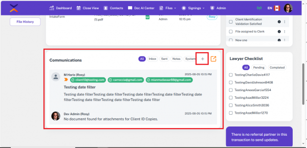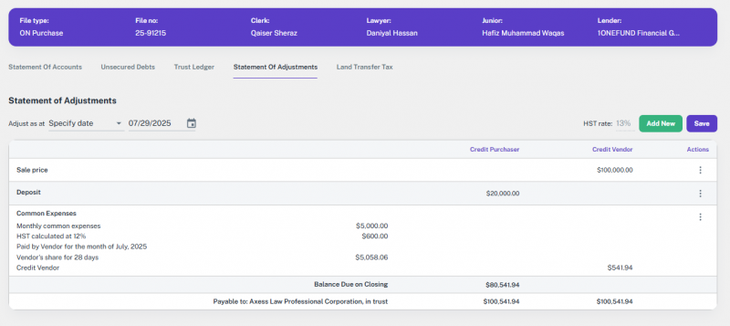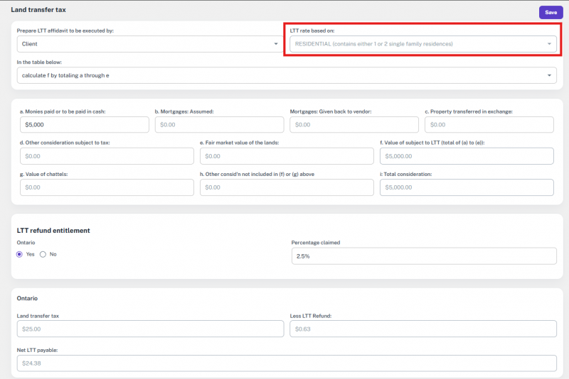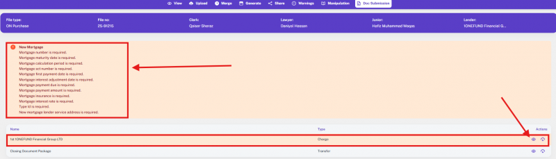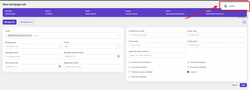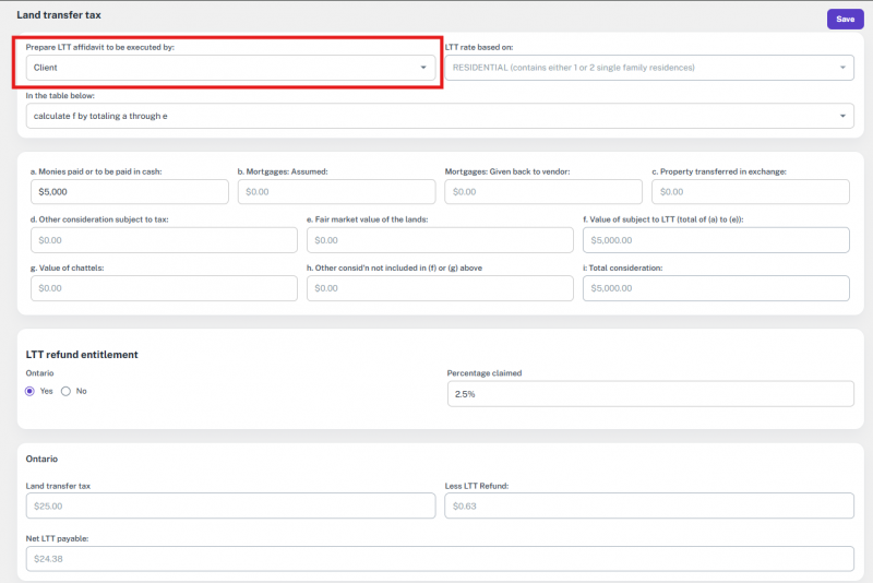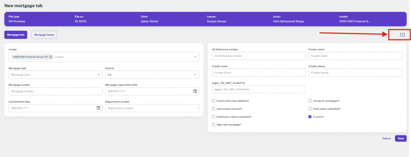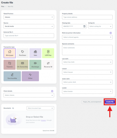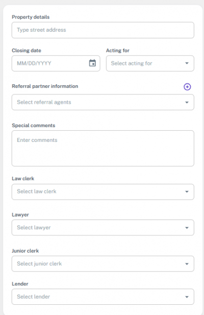 Note: If the file’s transaction type was something else and is later changed to one of the supported types, the option to add or update a lawyer will appear again.