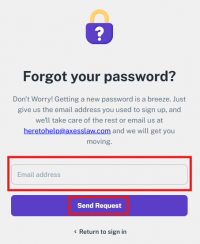 After clicking on 'Forgot Password', a screen will appear where you can enter your email address and click on 'Send Request' to submit a password reset request.