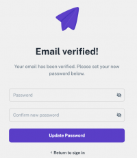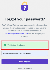 When you enter your email and send the request, you will see a screen displaying the message: “Verification Email Sent.”