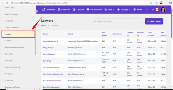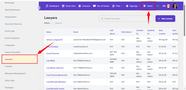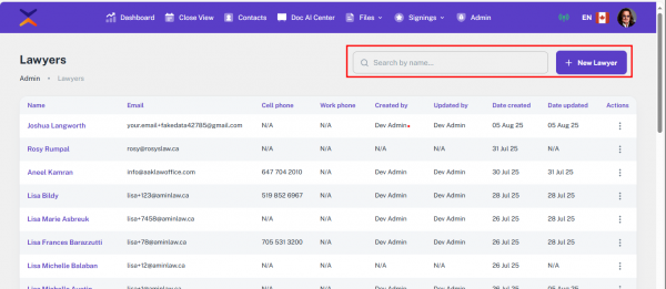 • They will also be saved under Admin → Lawyers for future use.
