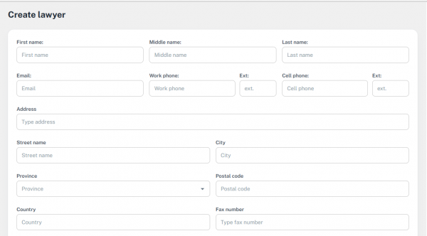 • Open the Lawyer dropdown to choose from existing lawyers.