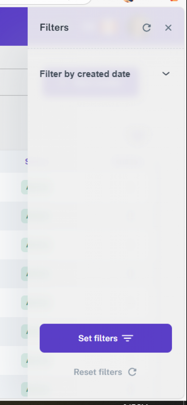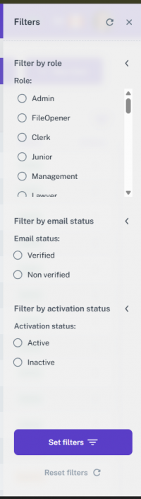 At the end of the filters section, there is a “Set Filters” button to apply the selected filters, and a “Reset Filters” button that clears all applied filters, returning the list to its default state. This makes it easy to manage and refine the user list efficiently.