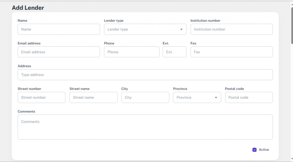 • Use the dropdown to select an existing lender.