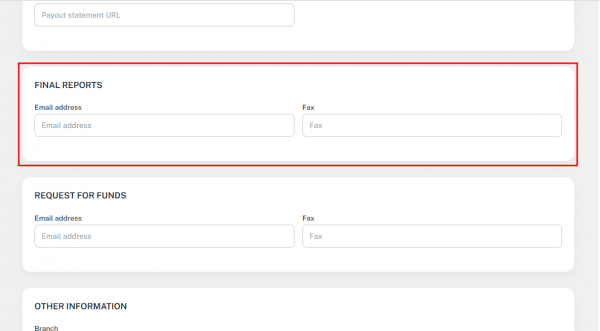 • Email, Fax, Payout Statement URL