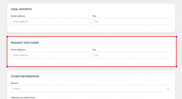 The form is divided into multiple sections (cards):