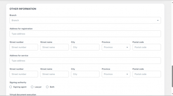 • Signing Authority: Lawyer / Signing Agent / Both