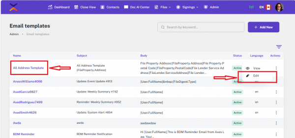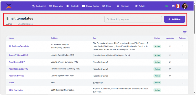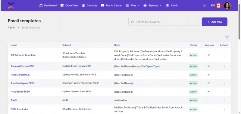 • Automated Email Templates