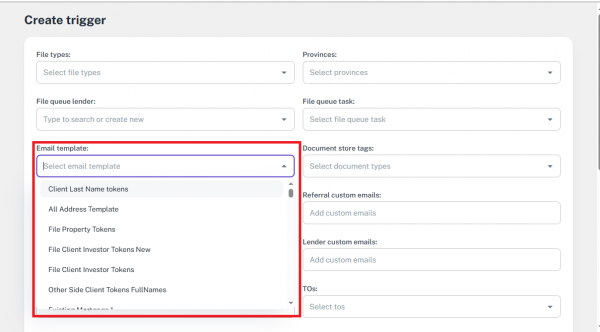 • When creating a new file, locate the Lender dropdown.