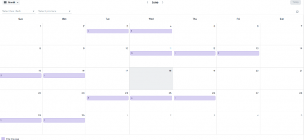 • Transaction Closing Date Calendar